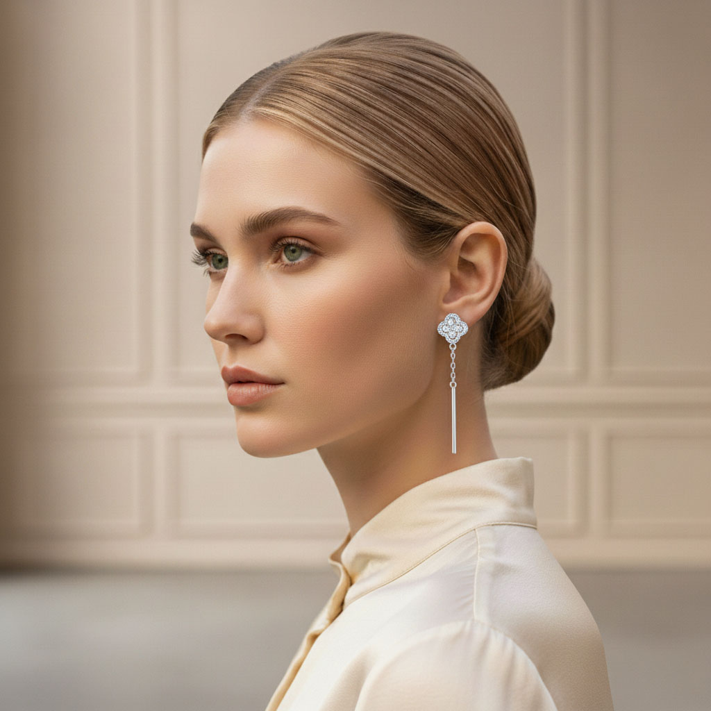 Graceful and radiant, the Icedmoon Elegant Flower Dangle Lab Diamond Earrings in Sterling Silver capture the beauty of blooming petals kissed by moonlight. Each earring features delicate floral details adorned with shimmering lab-created diamonds, gracefully suspended to create soft movement and sparkle with every turn. Crafted from solid 925 sterling silver, these dangle earrings embody timeless femininity and modern refinement – a perfect piece to elevate any occasion with subtle elegance and enduring brilliance.